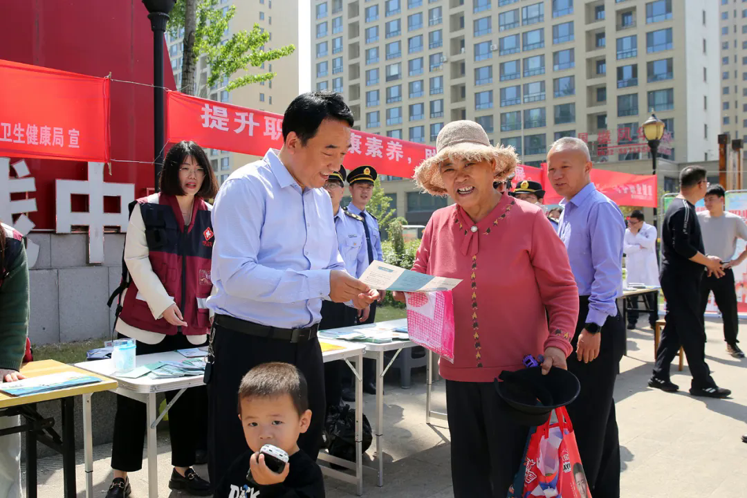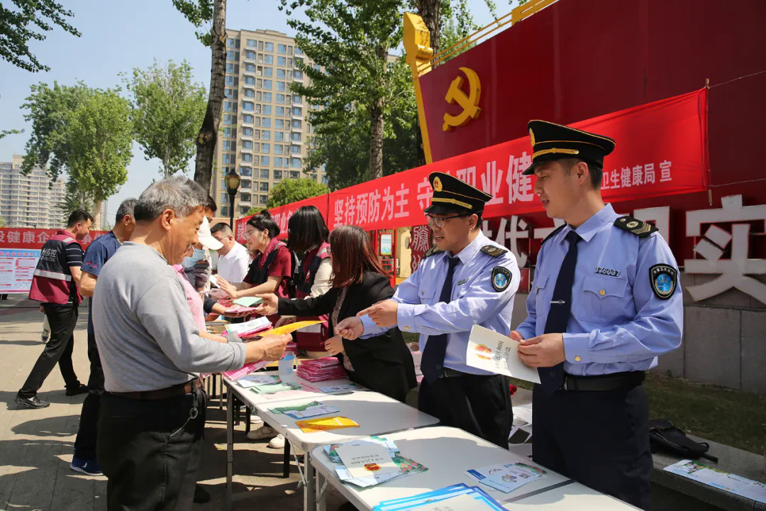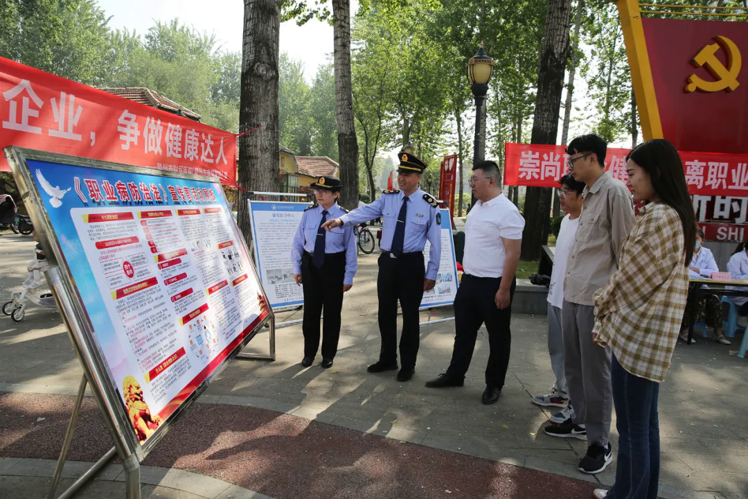 为提升劳动者职业健康素养水平,推动用人单位落实职业病防治主体责任,切实保障广大劳动者职业健康权益,营造全社会关心关注职业健康的浓厚氛围,4月26日,滕州市卫生健康局组织滕州市疾病预防控制中心(卫生监督所)、滕州市中医医院(工人医院)、滕州市财贸医院、滕州市龙泉社区卫生服务中心在弘道公园共同开展以“坚持预防为主 守护职业健康”为主题的《职业病防治法》宣传周宣传活动。市卫生健康局党组成员、二级主任科员颜红菊,市卫生健康局党组成员、市疾病预防控制中心党总支书记王鹏参加活动。