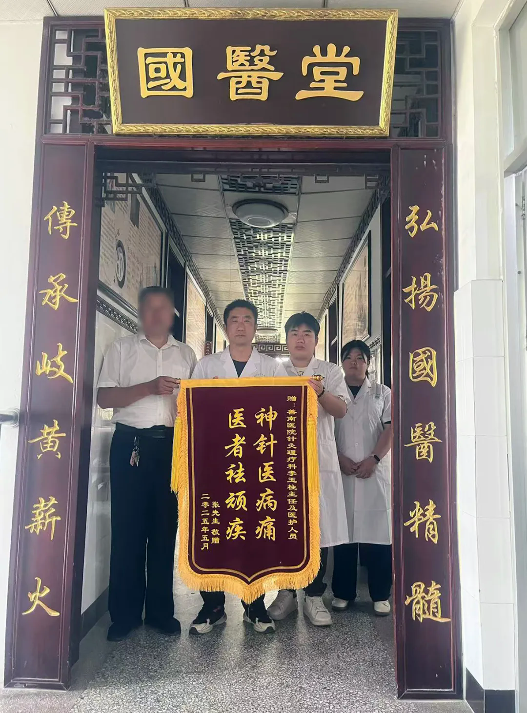 接过这面锦旗,理疗科全体人员表示,今后将继续把患者的肯定和依赖化为前行的动力,在中医特色技术上不断钻研,为更多的患者解除病痛。