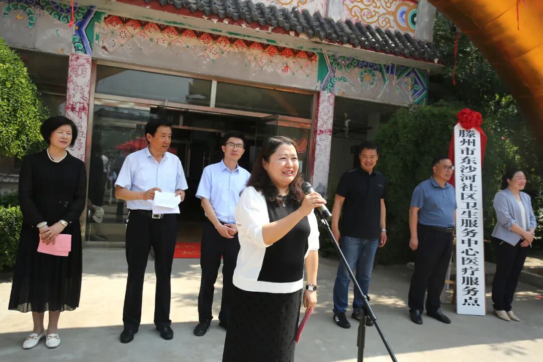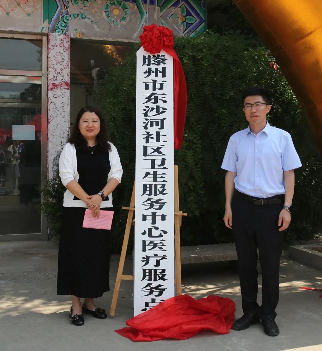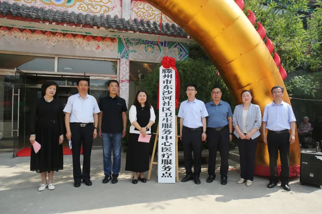 褚旭与李彦铮共同为“滕州市东沙河社区卫生服务中心医疗服务点”揭牌。