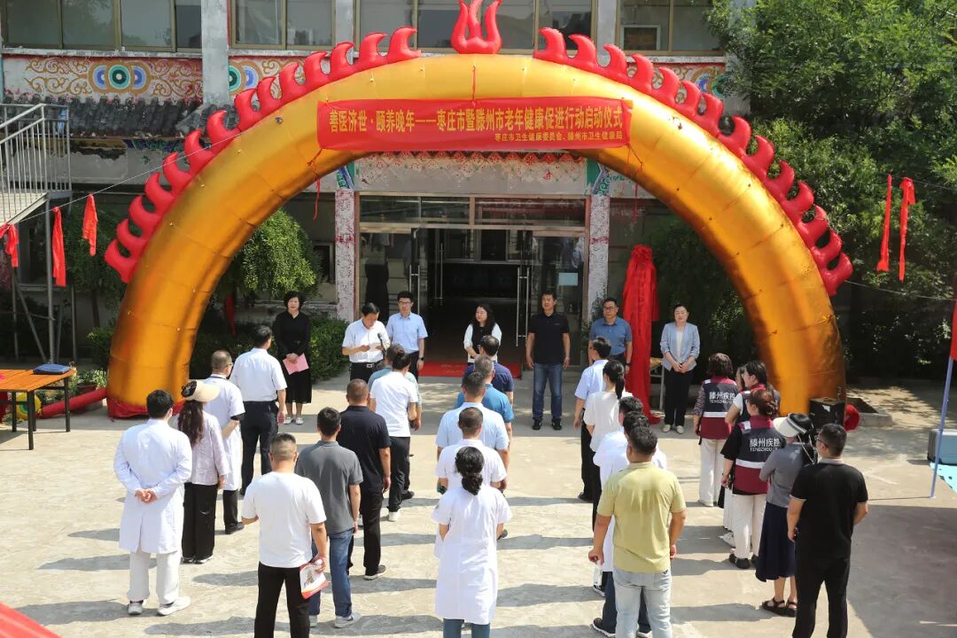 5月21日上午,滕州市卫生健康局在东沙河街道清水湾老年公寓举办“善医济世・颐养晚年——枣庄市暨滕州市老年健康促进行动”启动仪式。枣庄市卫生健康委党组成员、副主任褚旭出席活动并讲话,枣庄市卫生健康委医养健康科科长,四级调研员吴申参加活动,滕州东沙河街道党工委副书记、办事处主任李彦铮致欢迎辞,清水湾老年公寓院长王洪霞介绍“两院一体”合作情况,滕州市卫生健康局党组成员、一级主任科员李宪文主持活动。