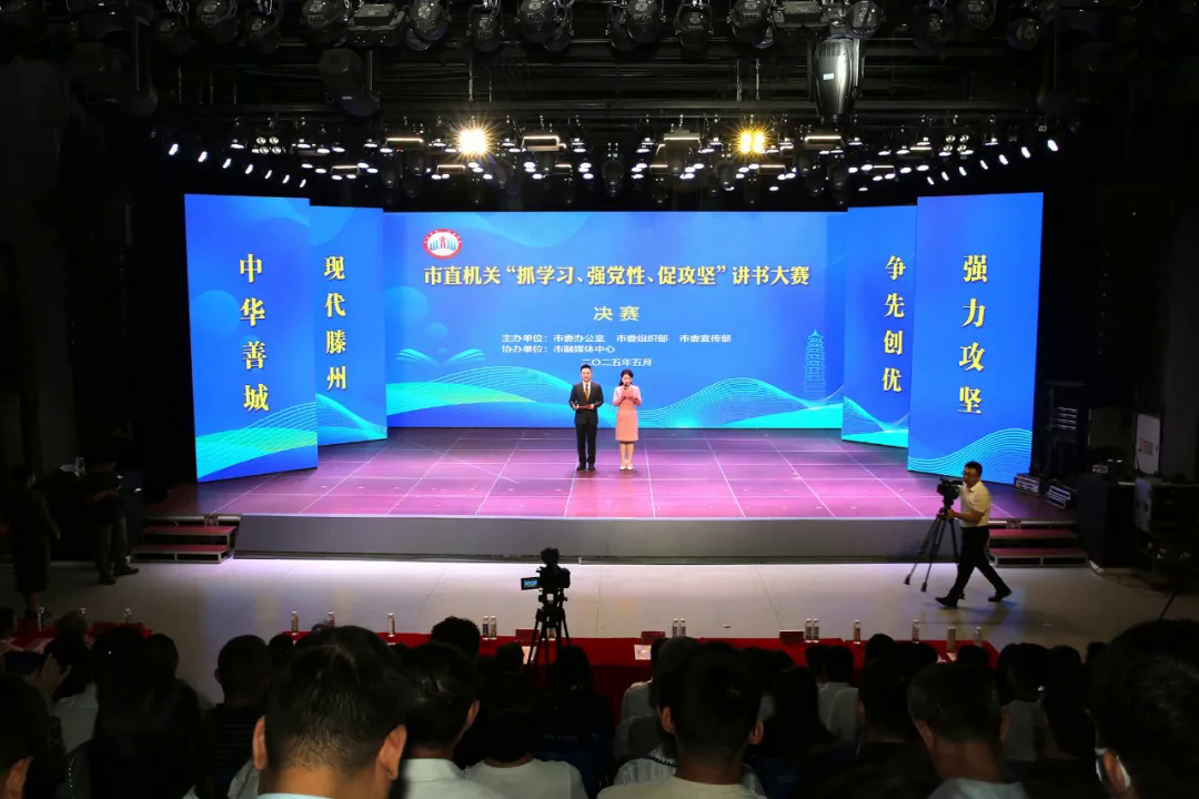 5月29日,由市委办公室、市委组织部、市委宣传部主办,市融媒体中心协办的“抓学习、强党性、促攻坚”讲书大赛决赛在市融媒体演播大厅顺利举办。
