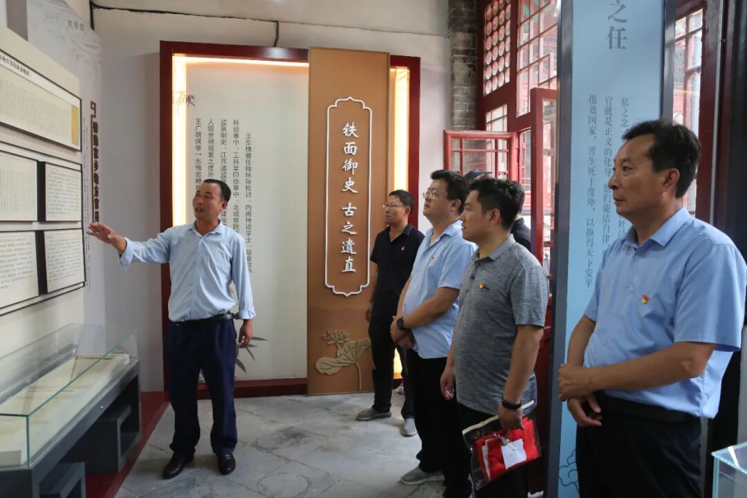 步入王家祠堂,古朴庄重的氛围令人肃然起敬。清代名臣王东槐一生为官廉洁,刚正不阿,素有“铁面御史”之称,其弹劾权贵、整肃吏治的事迹至今广为流传。在讲解员的引领和解说下,机关党支部全体党员依次参观了各个展厅,认真观看历史陈列、仔细聆听铁面御史王东槐的生平事迹,驻足凝视记录其廉洁事迹的石碑、手稿等珍贵文物,深刻感悟其“为官一任,清廉一方”的高尚品格。