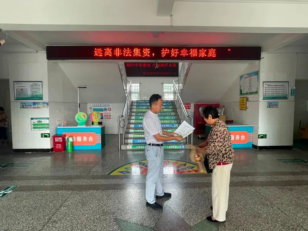 近日,滕州市善南社区卫生服务中心开展以“远离非法集资,护好幸福家庭”为主题的防范非法金融“以案促稳”宣传活动。通过讲座形式组织辖区群众学习防范非法集资有关知识,并采用电子屏滚动播放宣传标语、发放宣传手册、播放宣传视频等多种形式,向前来就诊的患者和家属讲解非法集资的常识,并结合典型案例让大家了解到非法集资的危害和应对措施。在主要街道通过悬挂横幅、设立咨询台发放宣传资料、现场讲解等形式,全方位加强宣传教育工作,切实提升群众风险防范意识和能力,进一步增强金融消费者防非拒非的能力意识,筑牢金融防非安全线。 (李宝建)