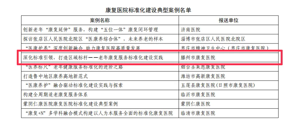 滕州市康复医院的“深化标准引领,打造区域标杆——老年康复服务标准化建设实践”案例入选康复医院标准化建设典型案例,创新“康复+ N”多学科融合模式,构建起全周期适老康复服务闭环。