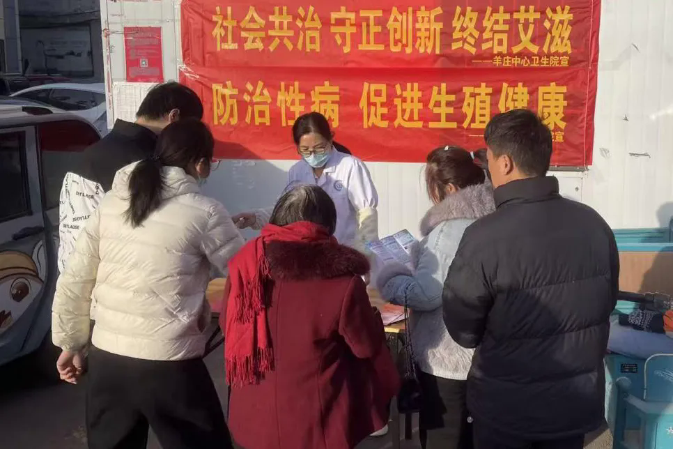 12月1日,滕州市羊庄中心卫生院通过悬挂条幅、摆放展板、发放宣传资料等方式,开展以“社会共治,守正创新,终结艾滋” 为主题的宣传活动,提升群众自我保护意识与技能,传递“消除歧视、共担责任”的抗艾理念。