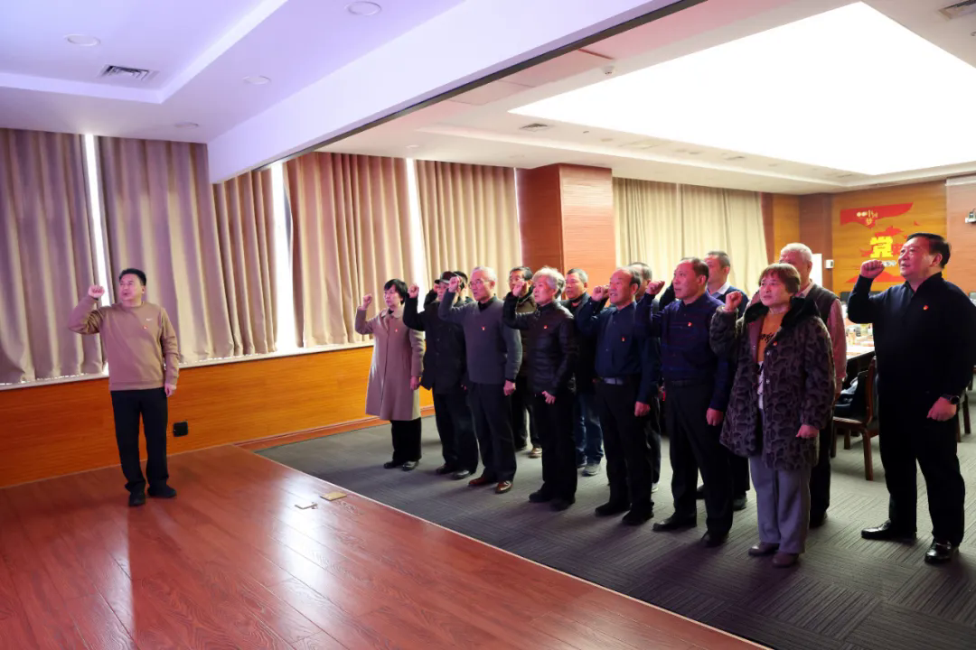 重温誓词,增强党性意识。老党员们面对鲜红的党旗,高举右拳,重温入党誓词。他们目光坚定、神情肃穆,用誓言再次表达了对党的无限忠诚和为共产主义事业奋斗终身的坚定信念。随后,召开座谈会,老党员们结合自身经历,深情回顾了入党初心和在党几十年的风雨历程,分享了离退休后坚持学习、服务社区、奉献余热的心得体会,并提出了一系列针对性和建设性的意见建议,充分展现了离退休干部“离岗不离党、退休不褪色”的政治自觉和情系卫健、不忘初心的深厚情怀。