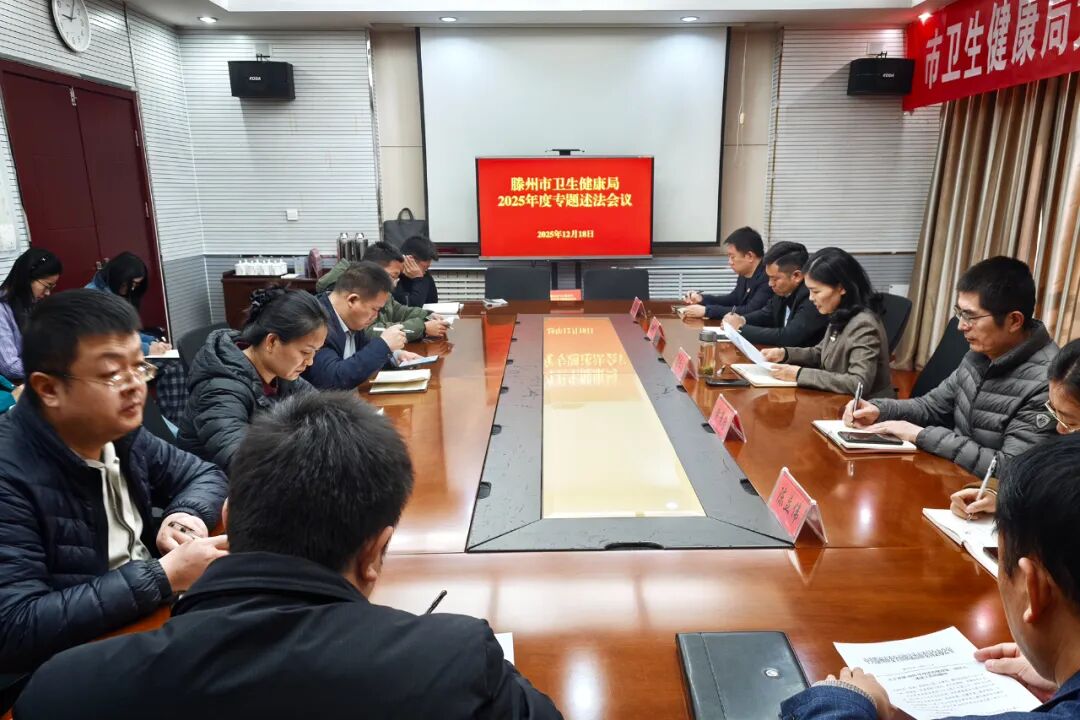 12月18日,滕州市卫生健康局组织召开2025年度专题述法会议。市卫生健康局党组成员、一级主任科员颜红菊参加会议并讲话。局机关市管干部及各科室负责人参加会议。