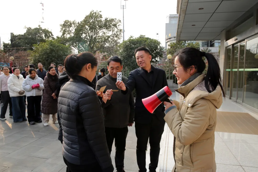业务交流结束后,庆元旦迎新年趣味体育运动会正式拉开帷幕。本次趣味运动会以“趣味竞技、快乐同行、凝心聚力、共筑卫健”为主题,设置了拔河、两人三足、双人羽毛球、双人乒乓球、跳绳等多个兼具趣味性、协作性和竞技性的项目。比赛现场气氛热烈、精彩纷呈,处处洋溢着欢声笑语与拼搏活力。各参赛队伍精神抖擞、斗志昂扬,队员们相互配合、默契协作,在赛场上奋勇争先、全力以赴;未参赛的职工化身热情啦啦队,呐喊声、加油声、欢呼声此起彼伏,汇成一片欢乐的海洋。