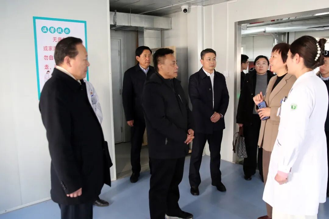 1月9日,枣庄市卫生健康委二级调研员张勇一行3人来滕开展“两院一体”医养结合机构三年提升工作专题督导,实地督导项目进展、破解实际难题,推动医养融合高质量发展。滕州市卫生健康局党组书记丁加水,市中心人民医院党委书记朱光耀,市卫生健康局和市民政局相关领导参加调研。