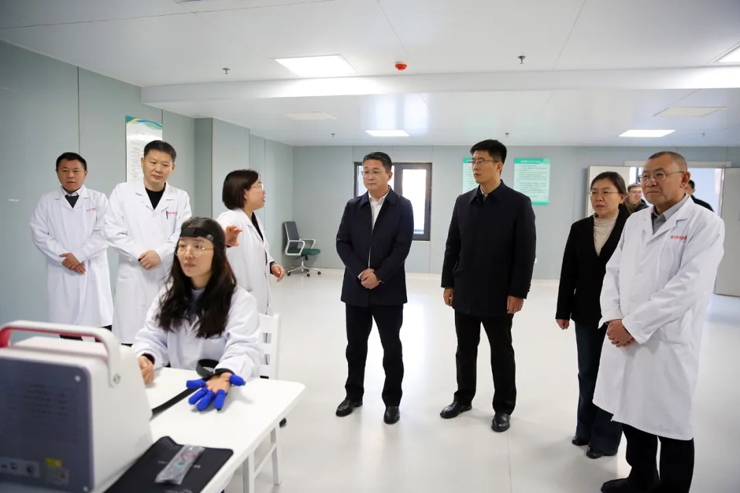 丁加水先后走访了医院服务大厅、康复治疗区、脑机接口康复治疗专区、中医特色治疗区等重点功能区域,通过实地察看、现场询问、设备实操等方式,详细了解医院规划建设、重点学科布局、高端设备配置、人才引进培养及运营管理等情况。他强调,康复医疗是守护群众健康的重要环节,医院要始终坚持“以人民健康为中心”,持续优化服务流程,提升诊疗精准度,让群众在家门口享受优质便捷的康复服务。