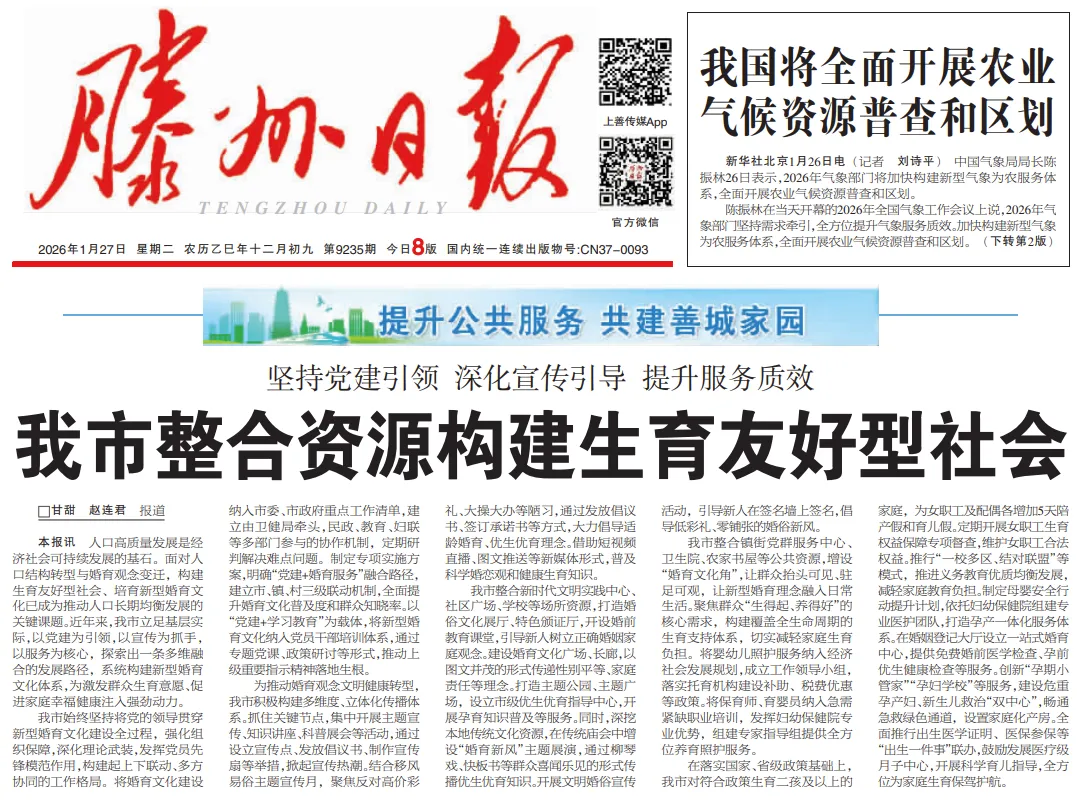 我市整合新时代文明实践中心、社区广场、学校等场所资源,打造婚俗文化展厅、特色颁证厅,开设婚前教育课堂,引导新人树立正确婚姻家庭观念。建设婚育文化广场、长廊,以图文并茂的形式传递性别平等、家庭责任等理念。打造主题公园、主题广场,设立市级优生优育指导中心,开展孕育知识普及等服务。同时,深挖本地传统文化资源,在传统庙会中增设“婚育新风”主题展演,通过柳琴戏、快板书等群众喜闻乐见的形式传播优生优育知识。开展文明婚俗宣传活动,引导新人在签名墙上签名,倡导低彩礼、零铺张的婚俗新风。