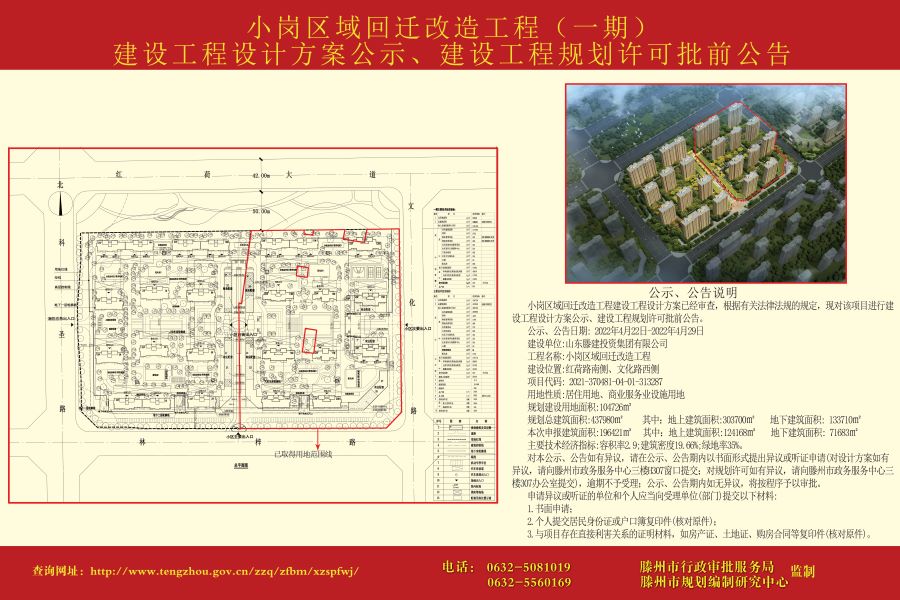 小岗区域回迁改造工程(一期)建设工程设计方案公示、建设工程规划许可批前公告