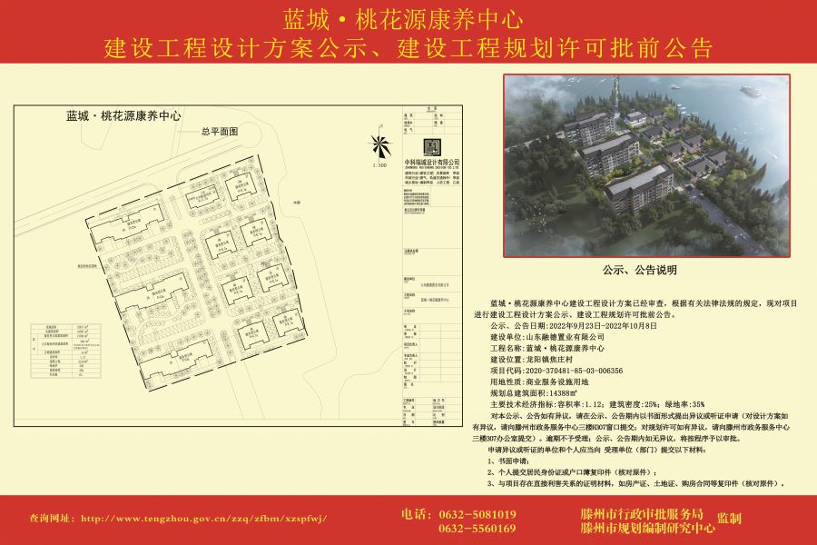 蓝城·桃花源康养中心建设工程设计方案公示、建设工程规划许可批前公告