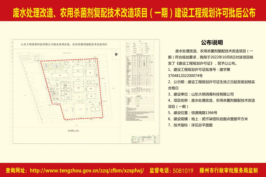 废水处理改造、农用杀菌剂复配技术改造项目(一期)建设工程规划许可批后公布