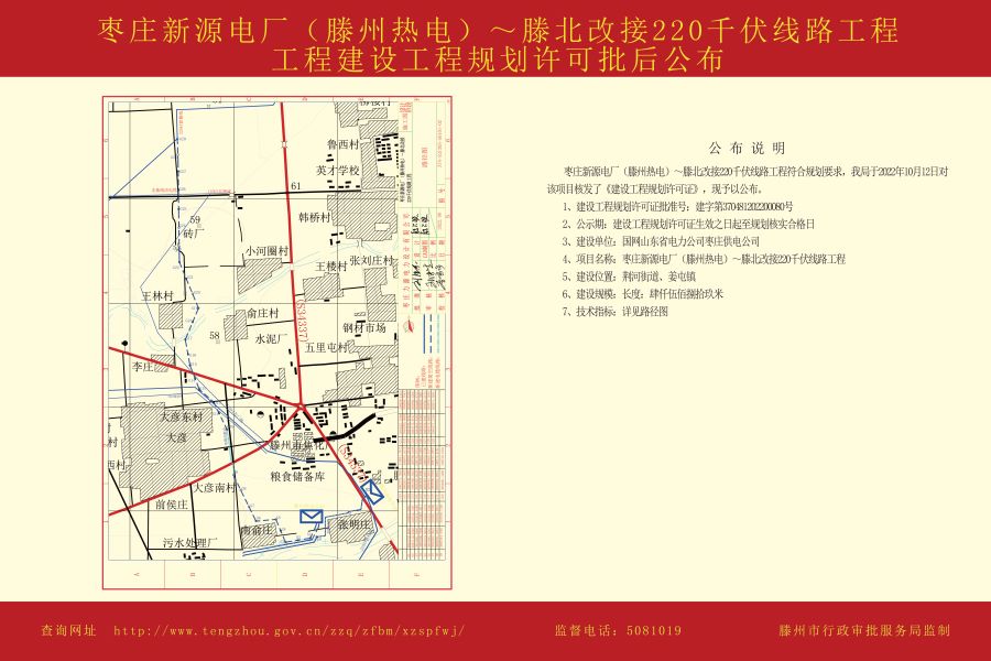 枣庄新源电厂(滕州热电)~滕北改接220千伏线路工程建设工程规划许可批后公布