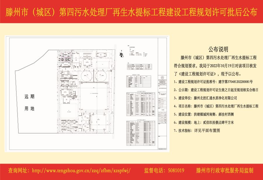 滕州市(城区)第四污水处理厂再生水提标工程建设工程规划许可批后公布