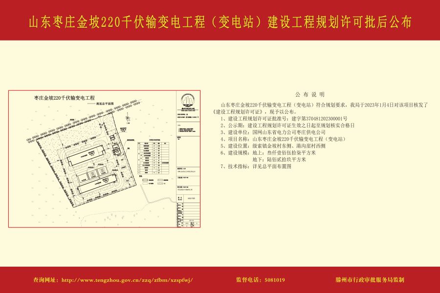 山东枣庄金坡220千伏输变电工程(变电站)建设工程规划许可批后公布