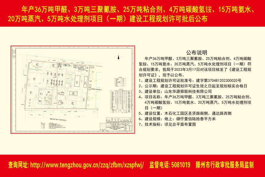 附件:年产36万吨甲醛、3万吨三聚氰胺、25万吨粘合剂、4万吨碳酸氢铵、15万吨氨水、20万吨蒸汽、5万吨水处理剂项目(一期)建设工程规划许可批后公布.jpg