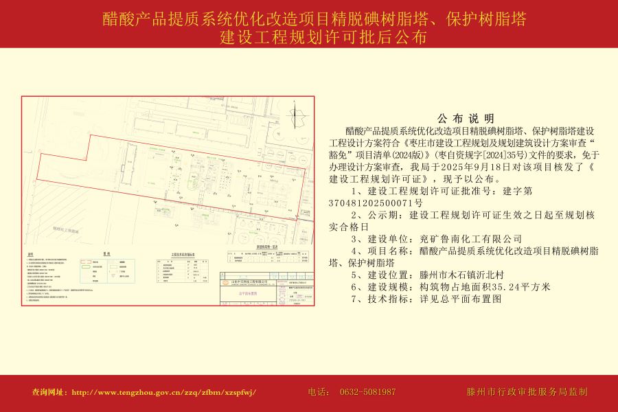 醋酸产品提质系统优化改造项目精脱碘树脂塔、保护树脂塔建设工程规划许可批后公布