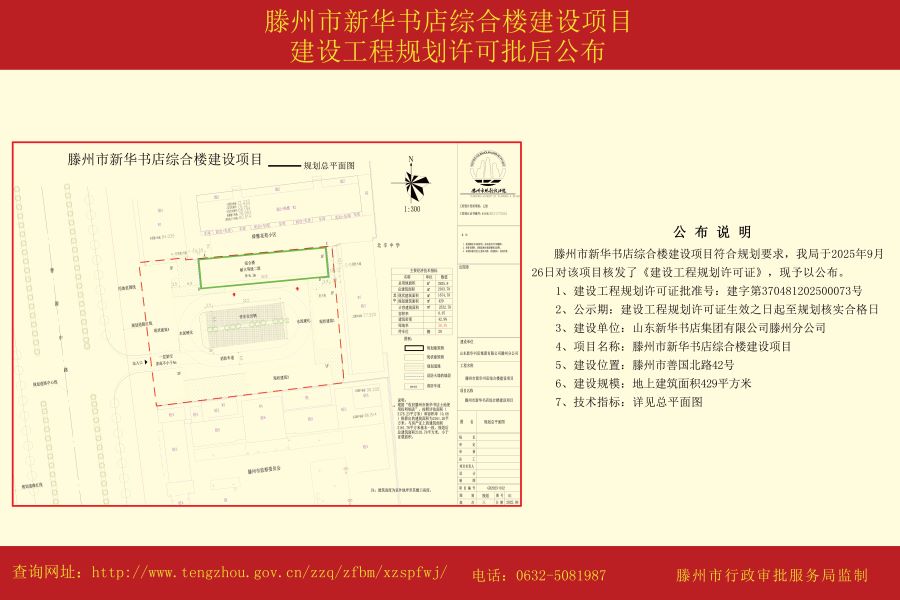 滕州市新华书店综合楼建设项目建设工程规划许可批后公布