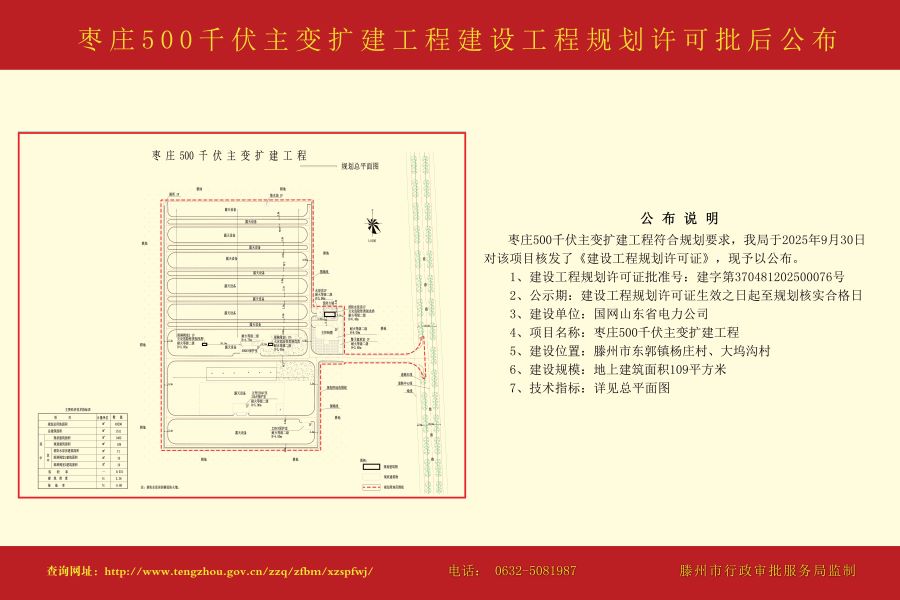 枣庄500千伏主变扩建工程建设工程规划许可批后公布