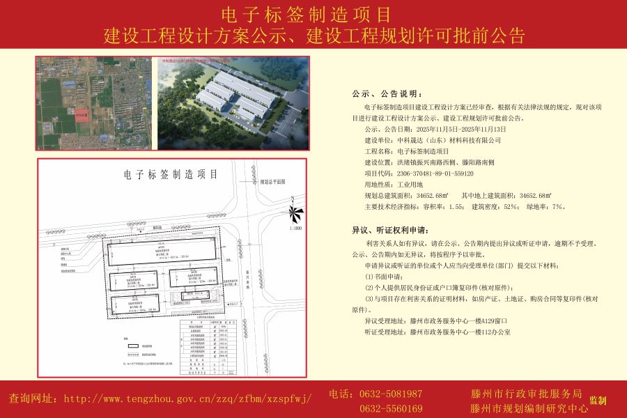 电子标签制造项目建设工程设计方案公示、建设工程规划许可批前公告