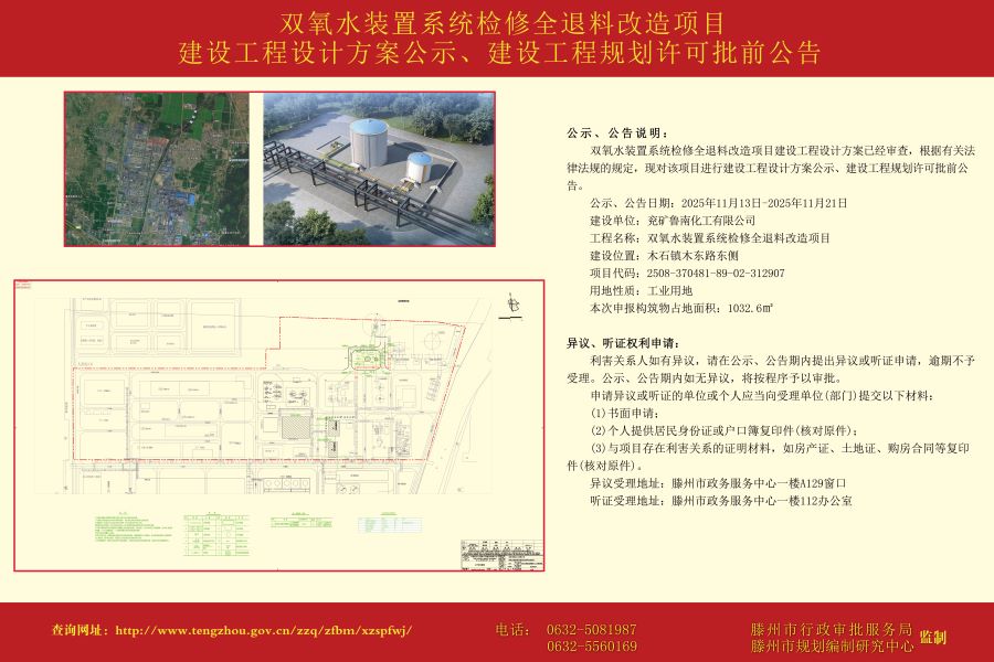 双氧水装置系统检修全退料改造项目建设工程设计方案公示、建设工程规划许可批前公告