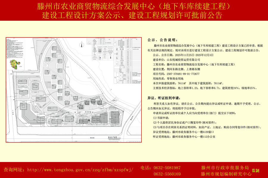 滕州市农业商贸物流综合发展中心(地下车库续建工程)建设工程设计方案公示、建设工程规划许可批前公告