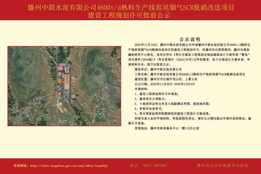 滕州中联水泥有限公司4600td熟料生产线窑尾烟气SCR脱硝改造项目建设工程规划许可批前公示.jpg