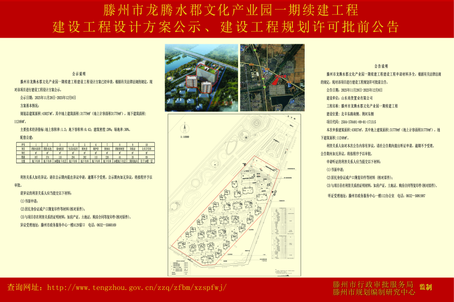 滕州市龙腾水郡文化产业园一期续建工程建设工程设计方案公示、建设工程规划许可批前公告