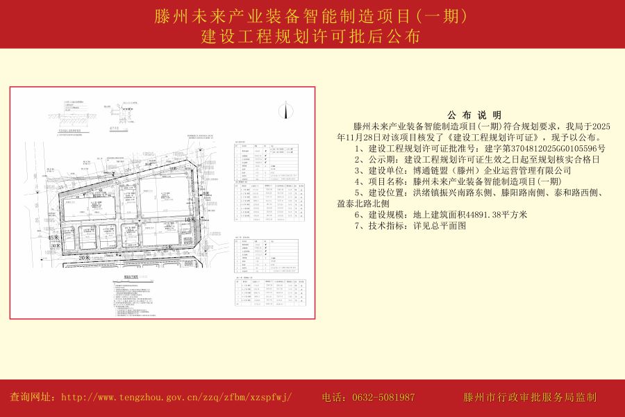 滕州未来产业装备智能制造项目(一期)建设工程规划许可批后公布