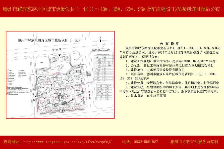 滕州市解放东路片区城市更新项目(一区)1~10#、15#、S5#、S6#及车库建设工程规划许可批后公布