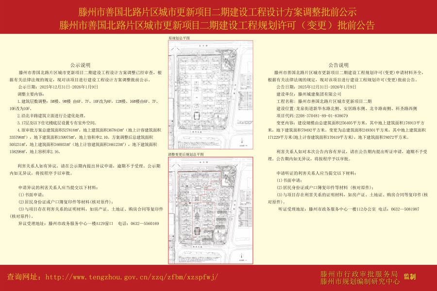 滕州市善国北路片区城市更新项目二期建设工程规划设计方案调整批前公示、滕州市善国北路片区城市更新项目二期建设工程规划许可(变更)批前公告