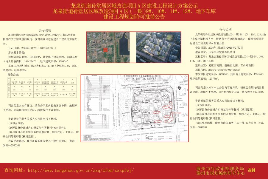 龙泉街道孙堂居区域改造项目A区建设工程设计方案公示、龙泉街道孙堂居区域改造项目A区(一期)9#、10#、11#、12#、地下车库建设工程规划许可批前公告.jpg