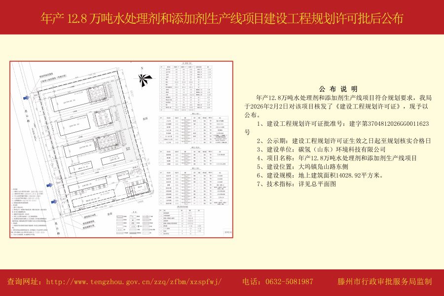 年产12.8万吨水处理剂和添加剂生产线项目建设工程规划许可批后公布