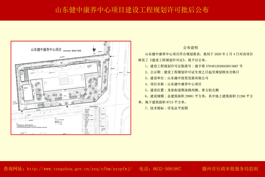 山东健中康养中心项目建设工程规划许可批后公布