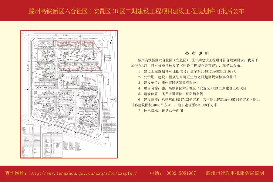 滕州高铁新区六合社区(安置区)B区二期建设工程项目建设工程规划许可批后公布