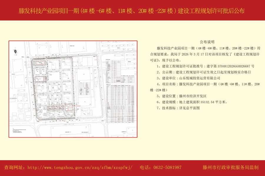 滕发科技产业园项目一期(4#楼-6#楼、11#楼、20#楼-22#楼)建设工程规划许可批后公布