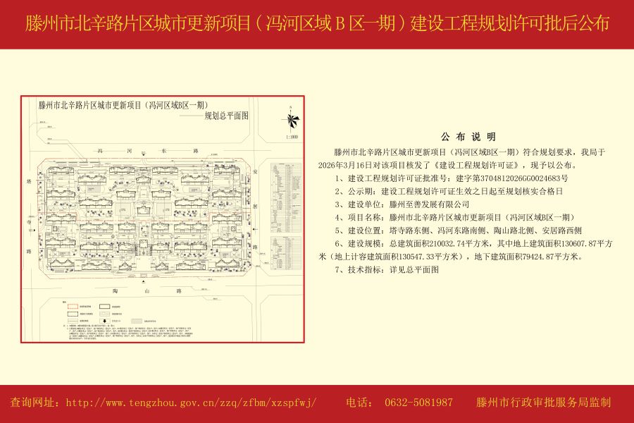 滕州市北辛路片区城市更新项目(冯河区域B区一期)建设工程规划许可批后公布