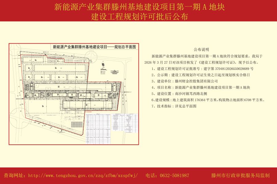 新能源产业集群滕州基地建设项目第一期A地块建设工程规划许可批后公布