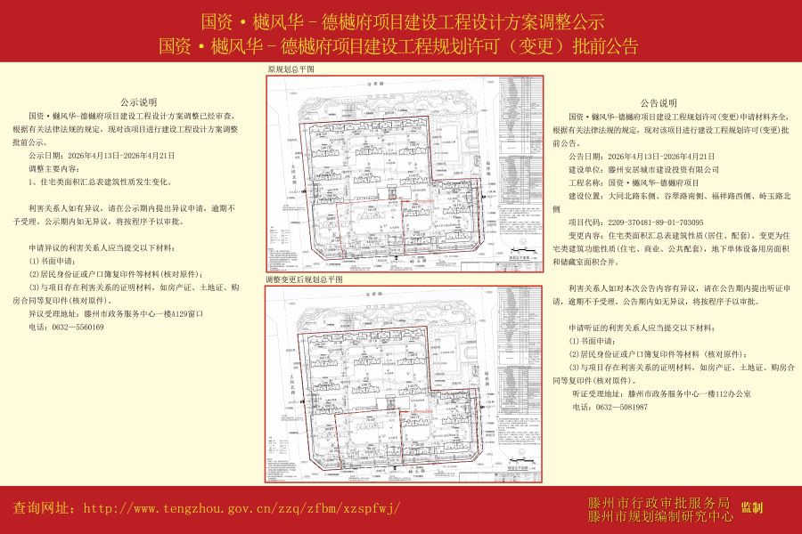 国资·樾风华-德樾府项目建设工程设计方案调整公示、国资·樾风华-德樾府项目建设工程规划许可(变更)批前公告