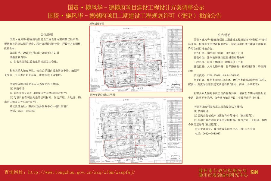 国资·樾风华-德樾府项目二期建设工程设计方案调整公示、国资·樾风华-德樾府项目二期建设工程规划许可(变更)批前公告