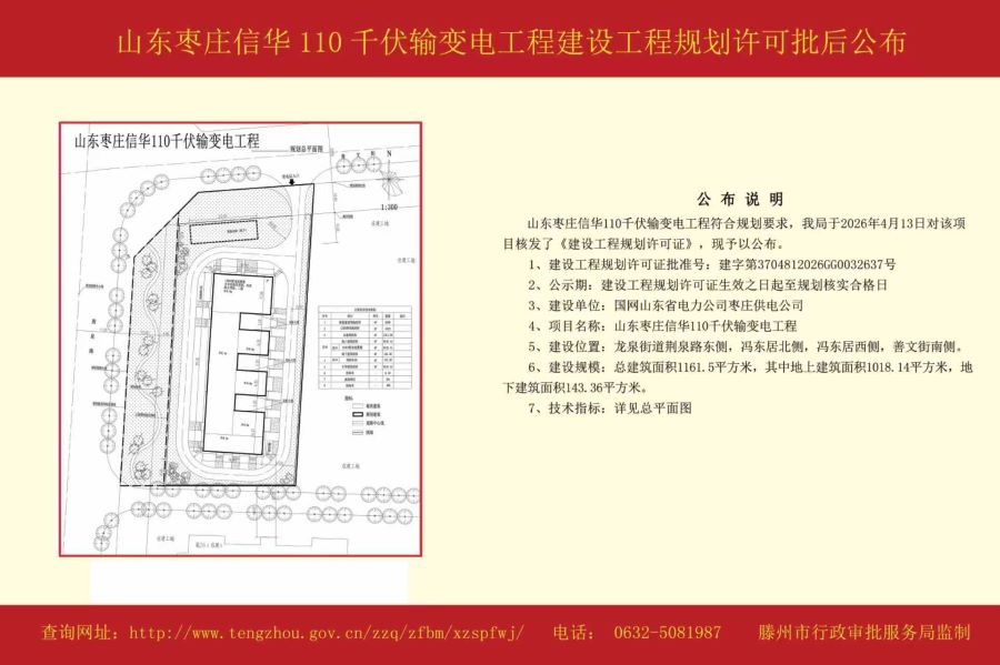山东枣庄信华110千伏输变电工程建设工程规划许可批后公布