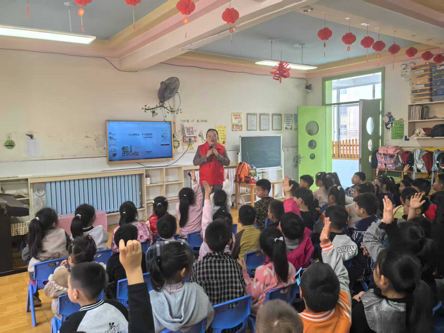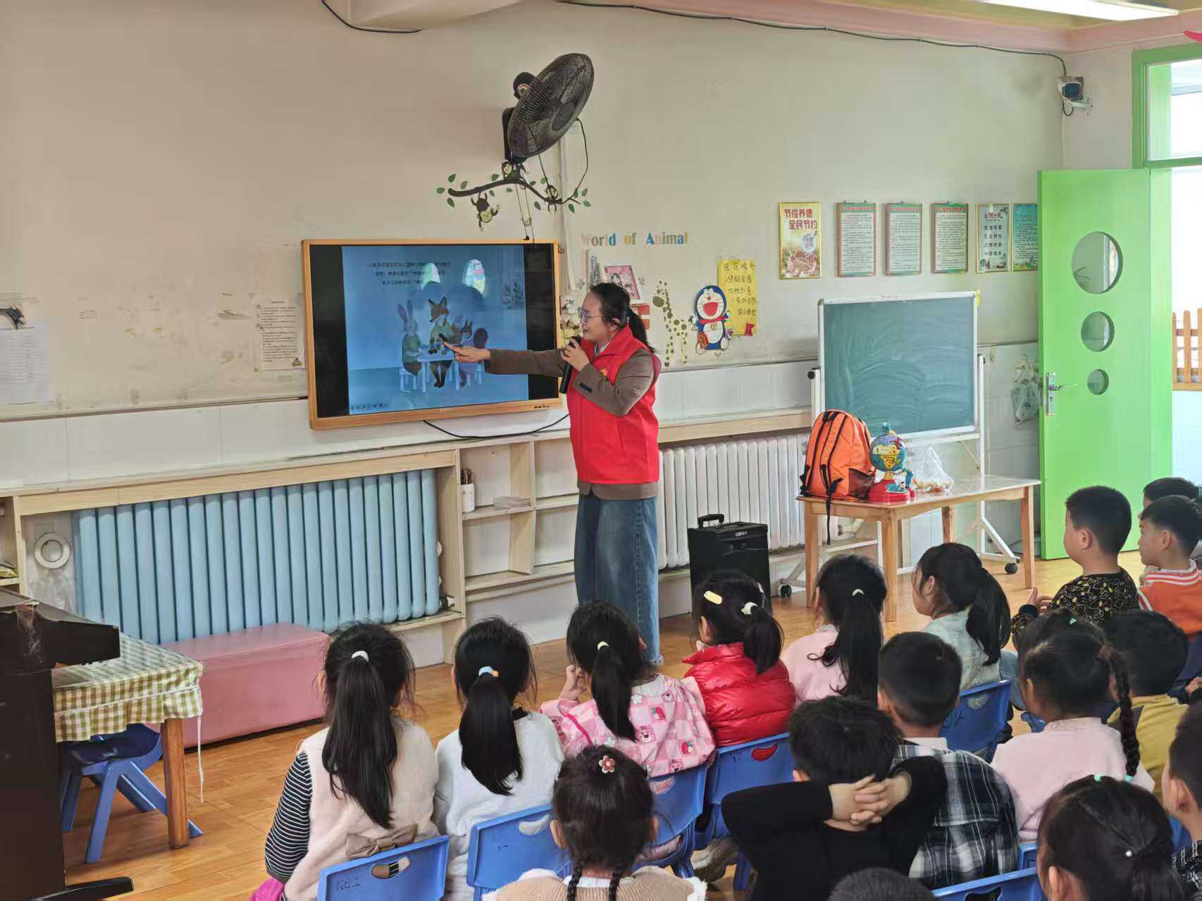 活动中,工作人员结合幼儿认知特点,采用自制绘本《地震来了怎么办》,以卡通形象“小兔子叮当”为主人公视角,用生动活泼、通俗易懂的方式,围绕地震成因、避险要点、疏散流程、自救互救等核心内容开展趣味科普宣讲,让孩子们在轻松互动中牢记防震避险基本常识,真正做到听得懂、记得住、用得上。