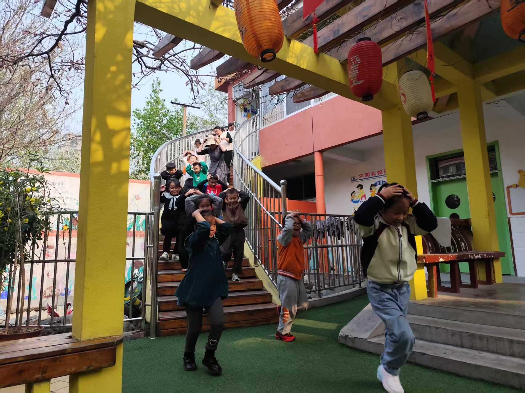 宣讲结束后,工作人员现场指导幼儿园开展地震应急疏散演练。随着演练警报响起,各班教师立即组织幼儿双手抱头、就近避险,待震感减弱后,按照预定疏散路线,快速、有序撤离至校园安全空旷区域。整个演练过程紧张有序、衔接顺畅,达到了以演促练、以练备战的预期效果。