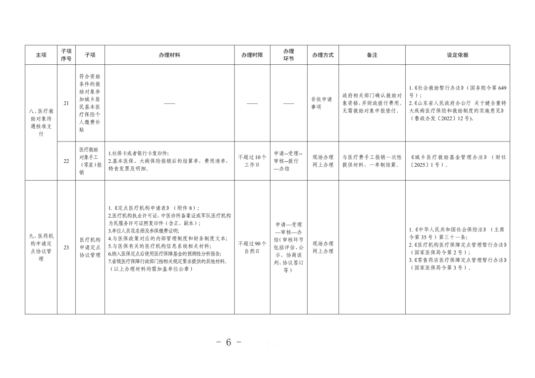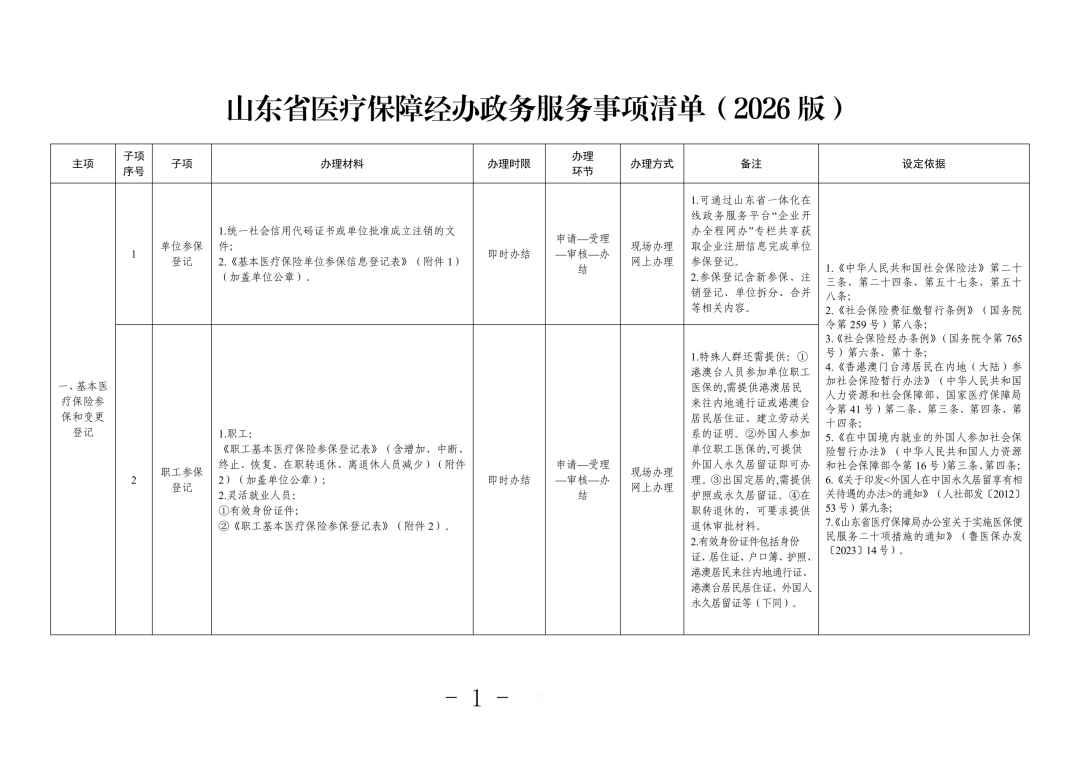 山东省医疗保障经办政务服务事项清单(2026版)