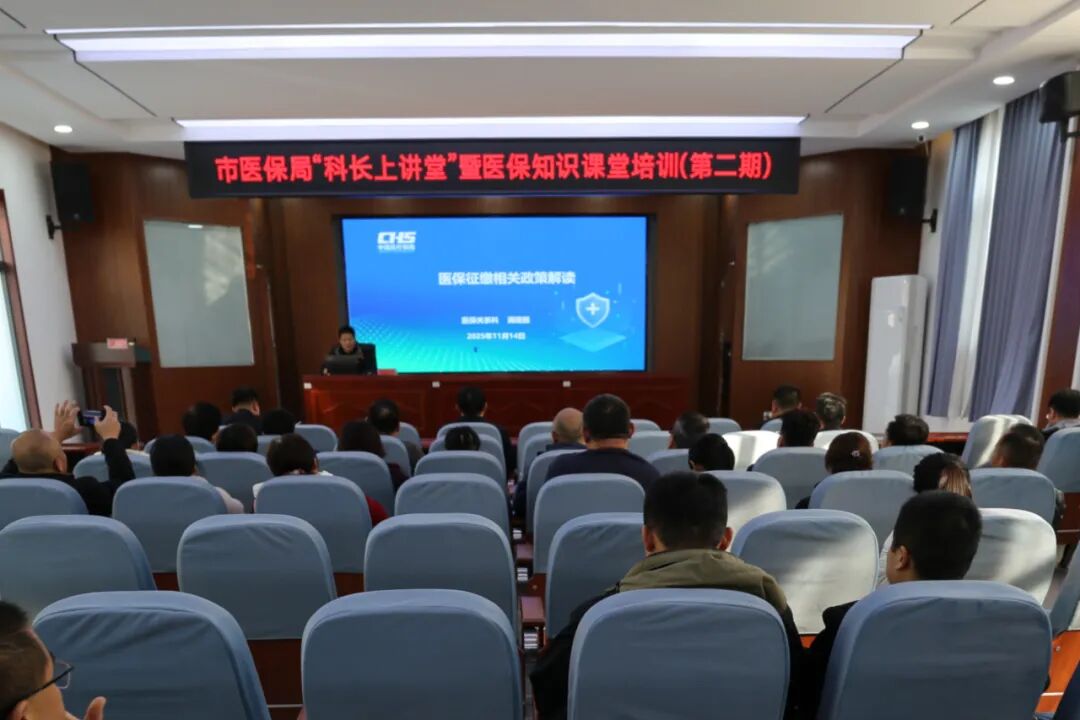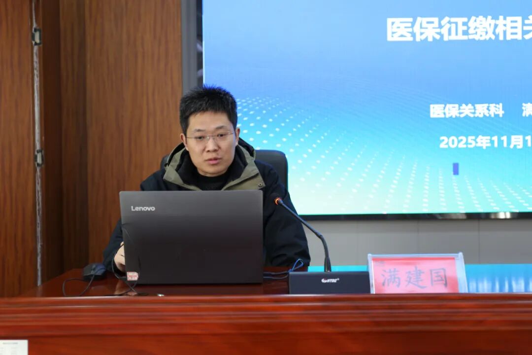 市医保局医保关系科科长满建国,从医疗保险简介、居民医保业务、职工医保业务以及其他业务等方面,对医保征缴相关政策进行了全面解读。各镇街医保办负责人认真聆听并记录要点,针对一些理解不够透彻的地方,在现场提出问题并得到了详细解答。